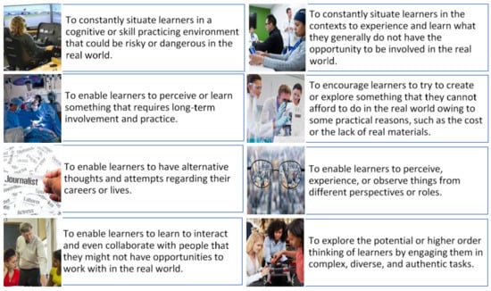 According to Zhang et al. [] (p. 11), there are specific contexts that further value the application of the metaverse to virtual experiments, such as: