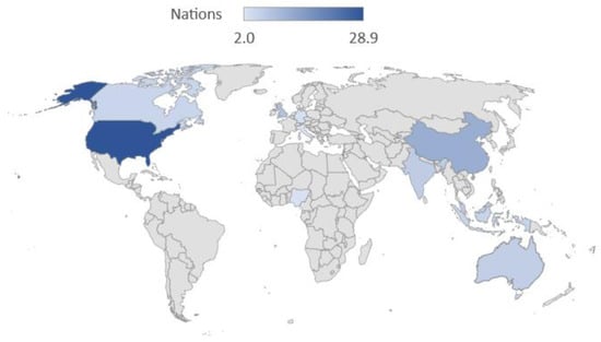 Nations of the universities’ authors in the field are affiliated (percentage values). Source: Own elaboration from Scopus data.