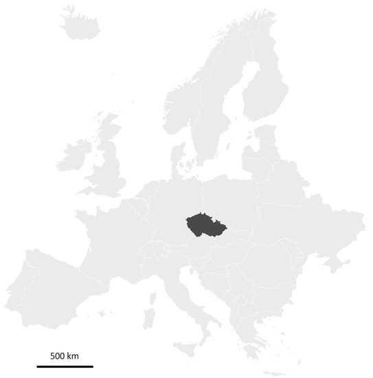 The study was carried in Czechia (51°03′20″–48°33′06″, 12°05′26″–18°51′33″) in central Europe (Figure 1). Czechia is located on the main European watershed, and all water is drained into one of the three seas (Baltic Sea, Black Sea, or North Sea). High quality drinking water is available to all inhabitants without restrictions, although there are minor water shortages during the summer in small villages in the countryside. There are no large natural lakes located in Czechia, and the majority of drinking water is taken from rivers.
