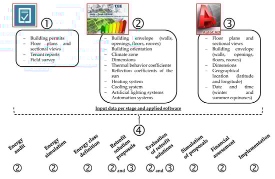 The contribution of this paper lies primarily in the speed and accessibility of the results. The proposed methodology then provides a solid technical perspective on energy improvement strategies while not wasting effort reinventing already tested and approved practices. In addition, this research is motivated by the need to explore low-cost estimating solutions that can be performed by people with basic skills, thus limiting the required workload. The software tools used were a commonly recognized three-dimensional computer-aided design modeler (AutoCAD) coupled with a low-cost certified energy efficiency calculator program (TEE-KENAK). Finally, the practical details of the renovation scenarios are presented in a way that everyone can understand immediately. Calculation time and effort is saved because all components included in both software packages can be easily exported, modified and converted into other retrofit scenarios.