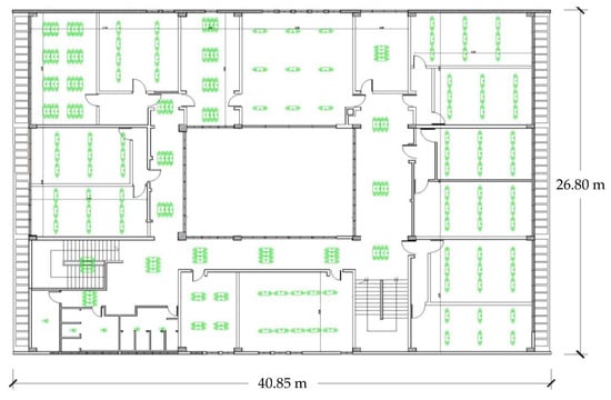 Based on the applicable national requirements, European standards, and instructions of the technical committees, this software tool implements the necessary algorithms for the calculation of the energy performance of buildings in Greece in accordance with ISO standards [,]. The TEE-KENAK software has been selected as the cheapest program on the market and at the same time certified for its reliable results. Once preliminary data such as geometric features and measurements of the building envelope, material properties or orientation are collected, they become inputs to the software in the form of separate features. Note at this point that the software includes separate “masks” or screens for each category of built materials (walls, openings, floors, rooves) where all the distinct geometries are classified according to the orientation criterion, calculated from their deviation from north. For each of these features, variables such as dimensions, thermal behavior coefficients calculated from the initial year of construction, and solar reflection coefficients are recorded. Additional screens in the software contain information about the heating and cooling system, the artificial lighting system and the presence or absence of automation systems. Once all the data is entered, the building can be simulated in the TEE-KENAK software, creating a baseline for existing energy efficiency. The software then builds a model of an “ideal” building in terms of thermal behavior. Once all the data has been entered, the software tool compares the “ideal” building (same dimensions as the building under study, same geometric characteristics) with the buildings under study, and issues an energy class category (from A to G, where A indicates that the building has an excellent energy performance and G indicates that the building is a real energy sink) [].