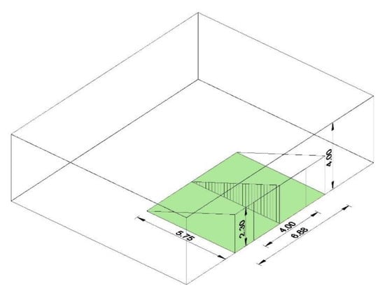 By way of illustration, as shown in Figure 7, the DZ of the teaching area is represented by a “wedge” shape calculated by a triangular profile; a profile determined by adding the width of the opening (i.e., 4.00 m) and half the height of the openings.