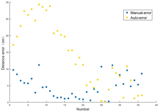 Figure 8 showed the seed distribution map for each seed route. Manual control of seeding was basically within the scope of the preset seeding route, but the distribution from seeding was not uniform, and the phenomenon of replaying and missing seeding was seen often on the seeding route. The seed distribution of the automatic control sowing was more uniform, with less missing sowing that needed rework. The error of the distance between the seed position and the preset seeding route was measured, and the error of the seeding route was obtained. The measurement results were shown in Figure 9.