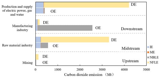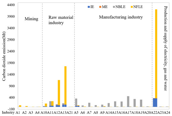 4.3. Accounting of CO Emissions Transfer between Industrial Sectors