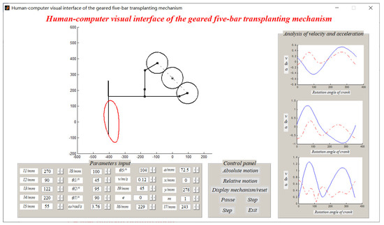 - On the basis of analyzing the structural composition and working principle for the transplanting mechanism, the human–computer interactive auxiliary interface was established through the kinematics model.