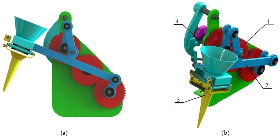 - Wang, Y.; Chen, J.; Zhao, X.; Sun, X. Parameter optimization and experiment of planting mechanism driven by plantary non-circular gears. Trans. Chin. Soc. Agric. Mach. 2015, 46, 85–93. [Google Scholar]