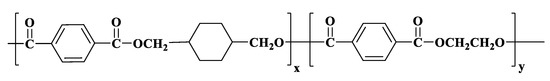 - Chen, T.; Jiang, G.; Li, G.; Wu, Z.; Zhang, J. Poly(ethylene glycol-co-1,4-cyclohexanedimethanol terephthalate) random copolymers: Effect of copolymer composition and microstructure on the thermal properties and crystallization behavior. RSC Adv. 2015, 5, 60570–60580. [Google Scholar] [CrossRef]