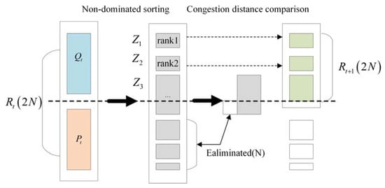 Qt is the child population, Pt is the parent population, and N is the set population size. The specific implementation of the elitist retention strategy is as follows.