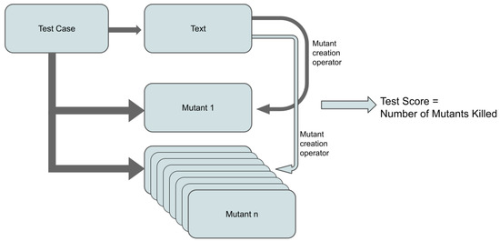 In this study, mutants are treated as texts in mutation testing. The text added to the system, i.e., the mutant, can be reproduced with the mutation operator. If the test case captures a mutant, this is called a dead mutant. If it is missed, it is called a living mutant. The performance of the test suite is tested using these mutations. Figure 3 shows the test suite’s test cases and each test case’s mutants. In our model, each test case can have many mutants.