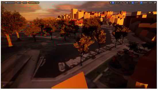 Multiple simulation and serious games, involving city management and planning, have been developed [,,]. These games investigate the impact of multiple aspects over a long period of time []. Software and application development aspects range from critical thinking boosting [] to emergent property management []. As such, it is considered feasible and beneficial to pursue the utilization of the interactive environment (e.g., game engine world and digital twins) for urban planning processes.