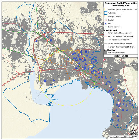 In the event of a large-scale industrial accident, there are specific factors, activities, spatial elements, groups of people, etc. that may be affected significantly and should be considered and examined thoroughly during the spatial planning processes of sites with Seveso facilities. The specific spatial elements depend on several social and environmental components of the area that will be affected by the accident, as well as the key infrastructures of the area adjacent to the facility.