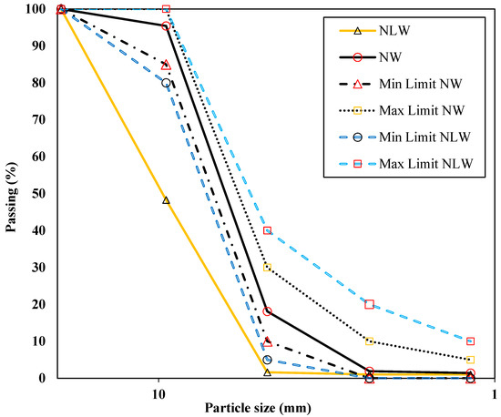 Sieve analysis for NW and NLW aggregate used in the current study.