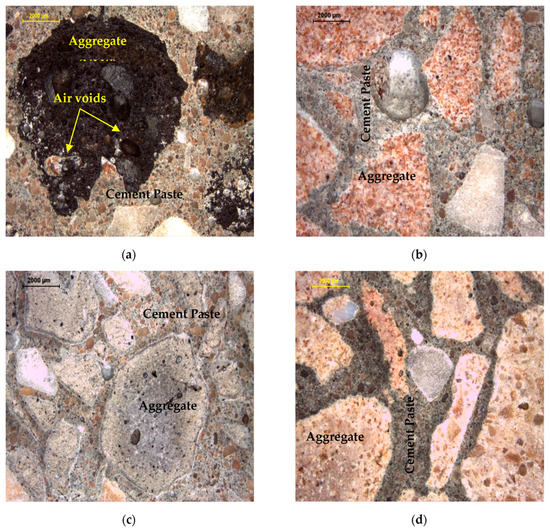 To study the physical internal characteristics of the concrete made by using NLWA and GMPA series, the microscopic images corresponding to the same age, i.e., 28 days were studied as shown in Figure 21.