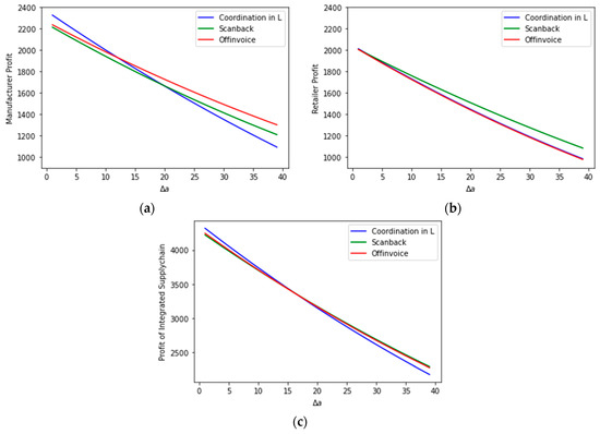 Additionally, the rate of profit decline is higher under the off-invoice policy in the presence of negative demand disruption. Therefore, the manufacturer’s scan-back policy may be a more sustainable strategy in this case, potentially due to the lower order quantity of the retailer under the scan-back policy.