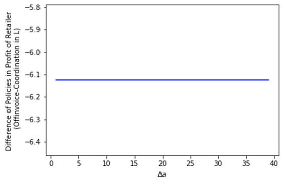 Difference in the retailer’s profit in different policies (“off-invoice”–“Coordination in L”) under demand disruption ().