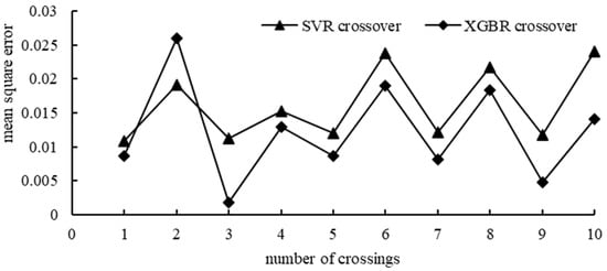 Figure 9 shows that the mean-square error of the XGBoost algorithm in 10% cross-validations was significantly lower than that of the SVM algorithm except for the second cross-validation.