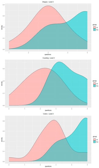 In level 3, a trend similar to that in levels 1 and 2 is also observed; therefore,, in this case, the results of the control group, for the topics of figures and colors, show a better trend than in the previous levels, as shown in Figure 7.