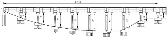 In this paper, an actual aqueduct project is taken as the research object, and the aqueduct’s seismic performance is studied using a new type of self-centering seismic isolation bearing. The aqueduct is located in a high seismic intensity area in southwest China, and the superstructure is a 30 m-span simply supported girder, as shown in Figure 1. The superstructure is a U-shaped reinforced concrete girder, and the substructure is a single-column hollow pier with a pile-group foundation. Typical cross-sections of the girder and the pier are shown in Figure 2.