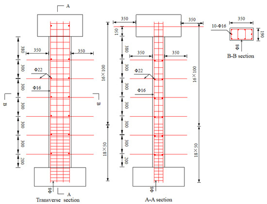 The material test results are: the average compressive strength of the concrete is 40 MPa, and the elastic modulus is 3.45 × 104 MPa. The elastic modulus of the reinforcement is 2.08 × 105 MPa, and the yield strength is 401 MPa.
