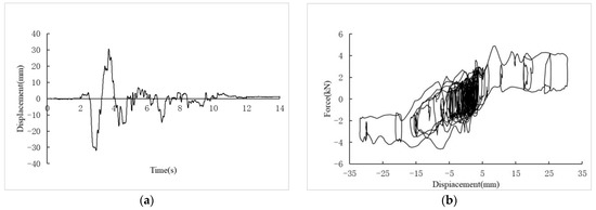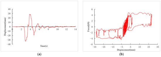 Time history and hysteresis curve of the IPGB of Model II for case 16. (a) Bearing displacement. (b) Hysteresis curve.