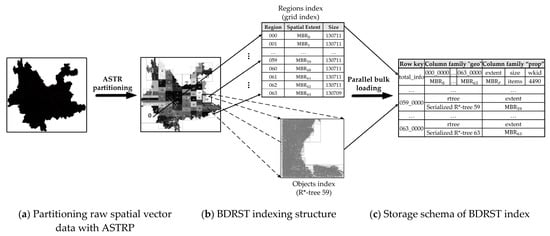 In this section, we introduce the proposed BDRST indexing approach to provide fast spatial-query processing for HBase. We tackle the problem of high loading and searching cost in NoSQL spatial-query processing based on disk-based R-tree variants. The R*-tree index provides fine-grained spatial retrieve results and reduces the redundant data accesses. Moreover, we implement a server-side parallel spatial-query processing mechanism based on HBase Endpoints to reduce data communication between the client and servers. According to the optimizing principles for sustainability in geospatial databases, the BDRST index and the processing mechanism improve the spatial-query processing performance, as well as energy-efficiency in HBase.