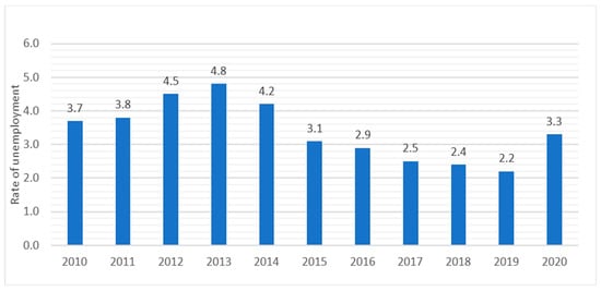 In the last decade, economic parameters were at a high level, resulting in significant development within the city. Due to the stable growth of income (Figure 5) combined with a low level of unemployment (Figure 6) and historically low interest rates, demand for residential premises grew rapidly.