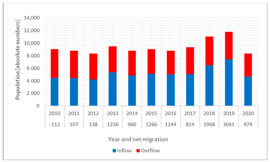 The economic development of Gdańsk and the high quality of life resulted in the permanent inflow of population for permanent residence. Although in 2020, this was disrupted by the COVID-19 pandemic (Figure 8).