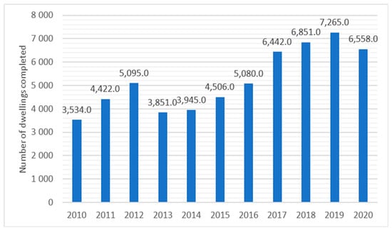 In the analysed period, growing demand was followed and supported by the growing number of dwellings completed, especially after 2014, which relates to rebounding from the after-crisis decline on an international scale in the years before (Figure 9).