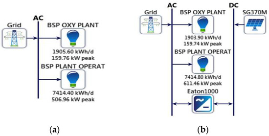 (a) Schematic of the grid-only simulation model, (b) Schematic of FSPV–grid simulation model.