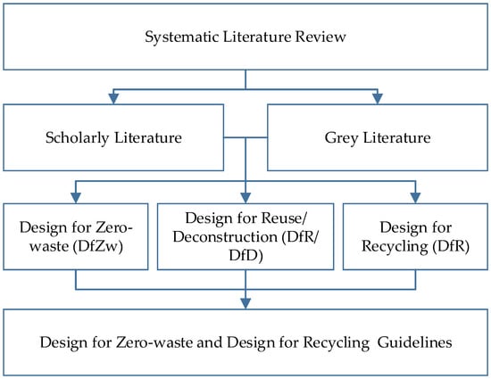 Despite having a strong emphasis on CE principles in the national and state/territory governments’ policies [37], clear guidelines for C&D waste management are yet to be developed for the built environment in Australia. From the literature, there are various design approaches to minimise C&D waste, namely, Design out Waste (DoW) [38]. This practice promotes the most efficient use of available materials to reduce the number of materials ultimately used in the construction processes [38]. Nevertheless, DoW guidelines for achieving the best waste management plan have not been thoroughly outlined yet [38]. Therefore, this study aims to review the issues related to “DfZW” and “Design for Recycling” (DfR) to help develop industry-specific CE guidelines. The study is part of a larger national study (Project 1.85—Enhancing the use of products with recycled contents in the Australian construction industry) that aimed to guide government decision-makers and industry practitioners to facilitate the utilisation of PwRC and to contribute to the further development of the CE in the built environment sector.