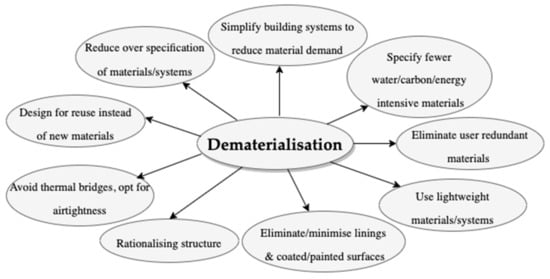 - Katie Skillington, R.H.C. Design for Dematerialisation: An Approach for Reducing a Building’s Embodied Environmental Flows. In Proceedings of the 54th International Conference of the Architectural Science Association 2020, Melbourne, Australia, 26–27 November 2020; Ghaffarianhoseini, A., Ghaffarianhoseini, A., Nasmith, N., Eds.; The Architectural Science Association: Melbourne, Australia, 2020; pp. 355–364. [Google Scholar]