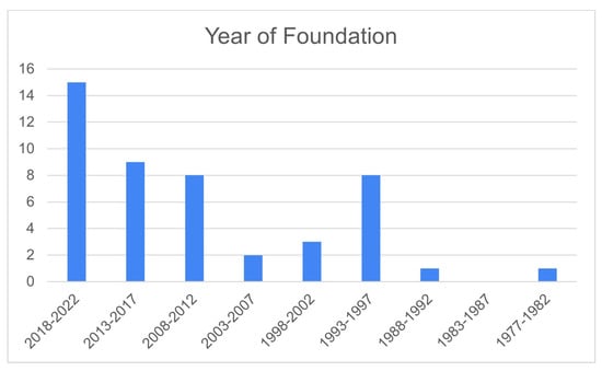 34]. Most cooperatives in our database are from agriculture and fisheries (n = 83), followed by professional and technical services (n = 32), and food (n = 15). The considerable number in agriculture and fisheries is largely due to there being 60 CUMAs (Coopérative d’utilisation de matériel agricole).
