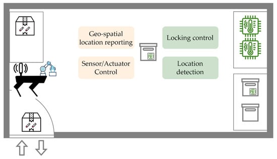 We now want to test the concept using a case study. In our case study, we deal with a CPS, which is a smart logistics system. In [39], we have elaborated the scenario aiming for human intelligibility as required for socio-technical design. In this contribution, the following part of the smart logistics system is considered: A robot has to pack a good into a smart transport box. To achieve this, it first picks up the goods at a checkpoint. At this moment, the robot receives the requirements for the smart transport box from the transferred goods, for example, whether the temperature must be monitored. The robot then assembles the smart transport box according to the requirements. The smart transport box can be equipped by the robot with IoT elements, such as a temperature sensor, a tracking sensor and/or other sensors as well as actuators. In the scenario, the robot performs this operation in a room with smart actors. These are a smart shelf with the smart transport boxes in different sizes, a smart shelf with the different sensors, the checkpoint equipped with sensors for the delivery and the shipment of goods, and a workbench for assembling the transport box. In addition, the room itself is equipped with sensors, for example a room air sensor [39].