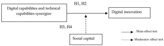 From the above literature analysis, it can be seen that enterprises’ digital capabilities are the main source of their competitive advantages in the digital era. Although many studies support the relationship between technological capability and innovation based on resource capability theory and dynamic capability theory, there are few empirical studies supporting the impact of digital capabilities on digital innovation in previous studies. Further research on the collaborative development of enterprises’ digital capabilities and technological capabilities can better realize the commercialization of enterprises’ core technologies. On this basis, this paper analyzes the impact mechanism of the synergic influence of digital capabilities and technological capabilities of enterprises on their digital innovation and the moderation of social capital on their relationship with the hope to provide a practical reference for China’s corporate digital innovation at this stage.