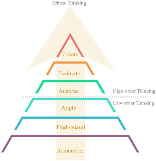 High-order thinking is associated with problem-solving abilities, creative and critical thinking, and, more recently, the use of technology in the classroom, all of which are thought to improve lifelong learning [31]. Departments of architecture are becoming more aware of the significance of sustainable education and the necessity for architecture students to employ higher-order thinking abilities. High-level thinkers are better suited to deal with the workplace, are able to think clearly and autonomously, can effectively manage their own lives, and can make substantial contributions to society.