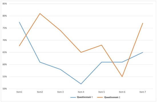 Figure 2 illustrates that, with the exception of item 6, a positive shift occurred for all items, demonstrating that students grew more receptive to new approaches when completing learning activities and valued various learning experiences that incorporated video-based resources. This finding is consistent with previous research that identified video-based resources as effective tools to motivate student learning [10,19,29].