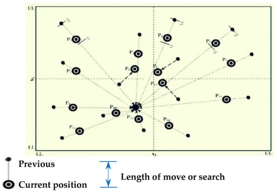 According to the step length of movement between the lower and upper level [LL, UL], each parameter will generate neighbor sets, which consist in determining a search direction with a step length using a position updating mechanism, which is a crucial step in developing effective search algorithms. This mechanism is given by Equation (10), and artificial agent updates its position on dimension at iteration t as formalized by Equation (10).