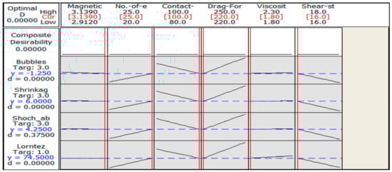 RSM may be used to remove obstacles between the bi-logical learning system and traditional artificial learning techniques and discovers six significant working parameters for the machine and five for the incubator, which have two empirical tie parameters, which are (Temperature and Viscosity). The core tenet of RSM is that recurrent tuning is unnecessary for the hidden neurons in a feedforward IFM network with a single hidden layer []. According to Tolouei-Rad, which is the origin of the mathematical WSA as shown in Table 4, which declares the IFM Pseudocode that discusses the WSA a unique member of the swarm intelligence-based methodologies that aim to characterize and duplicate the continually changing superposition because of the dynamic nature of the system and the attractive movement of agents. The mathematical WSA idea is set in motion by the configuration of algorithm parameters. WSA uses fitness values to determine the order of the solutions. By choosing a target place, the solutions are relocated there. The search direction for each solution is then decided per the target point, and its fitness value after the fitness values of the target point has been assessed. Each answer is then shifted in the chosen direction. Finally, each solution’s fitness value is assessed. Until a termination requirement is met, this process is continuous. The authors noticed that there is an inner source of heat caused by the electrodes installed in the Riga plate, which also affects the magnetic field strength, which must be controlled to prevent the shock absorption weakness caused by burning the nanoparticles over the upper mixture skin. Therefore, the authors resorted to tracking via imaging the nanoparticles and their quantity per minute by predicting it through a meta-heuristic WSA algorithm. The prediction reflects the temperature of the electrodes permeated with the mixture and can be controlled.