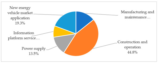 Third, the layout of policy instruments in the EVCI industrial chain needs to be improved. Chinese national policies have focused on the construction and operation of EVCI, and the state has mentioned building charging intelligent service platforms, establishing information interconnection mechanism, and standardizing and unifying industry standards in many policies; however, support for information platform service still accounts for the lowest percentage in the entire industrial chain.