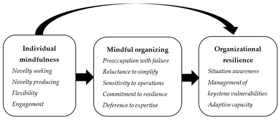 However, fewer studies have emphasized the association between mindfulness and organizational resilience [10]. The integration of mindful organizing and organizational resilience posits a better understanding of how organizations recover and develop following unanticipated events. Therefore, this study aims to explore the correlation between mindfulness and organizational resilience and whether the impact of mindfulness at the individual and/or organizational level can enhance organizational resilience. It contributes to the theories of organizational resilience and high-reliability organizations (HROs), which relate to mindful organizing. The results indicate how organizations develop their ability to maintain function and structure in the face of adversity through the core elements of mindfulness and the critical factors of organizational resilience.