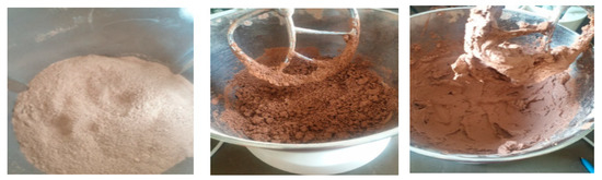 As recommended in the works of Sedran et al. [23], a need of water test is conducted. It consists of progressively mixing 715 g of fines (Pp) by adding a controlled quantity of water until the soil has a texture of a smooth dough (Figure 4). The added quantity of water Pe consequently enables the calculation of the elementary compactness CFE of FE (Equation (7)).