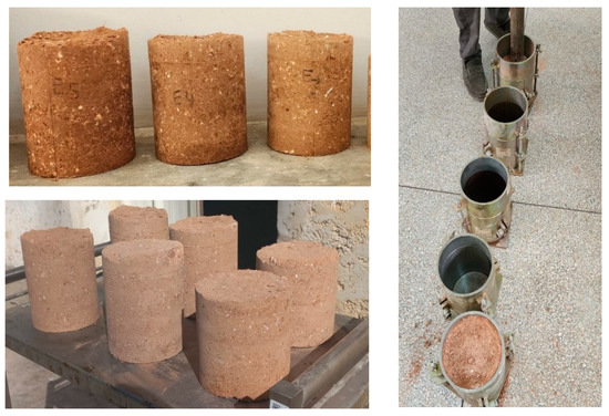 - Bui, Q.-B.; Morel, J.-C.; Hans, S.; Meunier, N. Compression Behaviour of Non-Industrial Materials in Civil Engineering by Three Scale Experiments: The Case of Rammed Earth. Mater. Struct. 2009, 42, 1101–1116. [Google Scholar] [CrossRef]