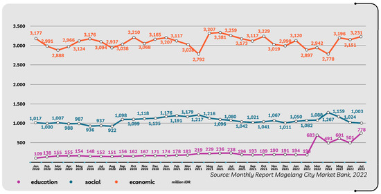 However, the COVID-19 outbreak emerged at the end of 2019, revolutionizing all human life activities worldwide [21]. Meanwhile, banking interactions have contradictions in anticipating the spread of COVID-19. All residents are jointly required to comply with the health protocols shown [22,23,24,25,26], one of which is social distancing—the new normal [27,28,29,30,31,32]—which is the opposite of banking transactions. Therefore, efforts are needed to impact the green economy and support the NFIS program [17]. Contributions in the banking context, even though they are small in scale at the regional company level, are one of the initiatives and real contributions that can show participation in achieving the green economy and the NFIS program, while still adapting to the impact of the COVID-19 pandemic. The regional public company owned by the Magelang City Government, namely the Magelang City Rural Bank (MCRB), has an important and strategic role in supporting economic growth in Magelang City, which encourages a green economy and the NFIS in Indonesia.