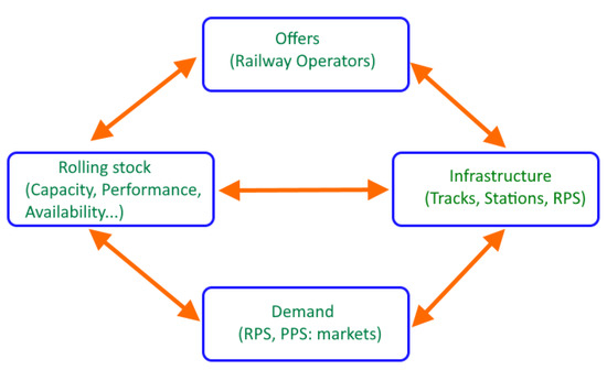 The transport segment is one of the main emitting sectors worldwide. For example, it is the second in the European Union [7], representing around 25% of the total greenhouse emissions (the second sector in this “dark” ranking after the energy supply segment). For this reason, it is a key sector related to achieving environmental targets in most countries, especially developed countries. In this segment, railways appear as the most sustainable mode of transportation. Some data are relevant to support this assertion: the rail subsegment accounts for 1.8% of the total EU energy consumption in the overall transportation segment, while in 2016 [7], it contributed 6.6% of passengers’ transportation and 11.2% of freight. Unfortunately, the COVID-19 pandemic has decelerated this trend (public transportation versus individual cars), and obviously, there is still considerable room to increase these shares if public authorities engage the support of railways.
