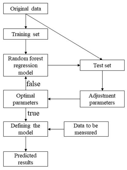 In the Python Sklearn random forest regression module, the max depth determined the downward frequency of the decision trees: the deeper the max depth, the more accurate the fitting result. However, excessive max depth may result in excessive fitting. The number of trees determines the size of the random forest model: the more trees, the more accurate the result obtained [15]. The random number determines the occurrence of events. If there is no specified random number, each calculation would produce a different result, and therefore the specified random number can help the client find better hyperparameters. The learning curve of the drawn model indicates that an excessively complex model will reduce the accuracy of the model, meaning that the excessive number of trees and excessive depth will increase the time of calculation and reduce the accuracy of the model. For this reason, accurate selection of the hyperparameter can greatly increase the accuracy and speed of the random forest model (Figure 2).