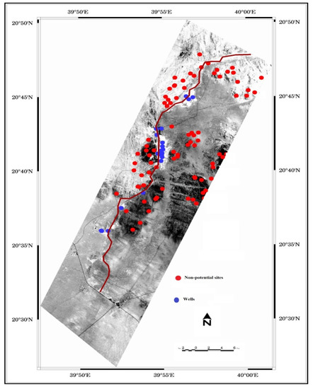 Groundwater potential mapping is an important issue in groundwater management and sustainability. Remote sensing data and GIS techniques are important in generating groundwater potential maps [5,8,9,10,11,12]. The authors of [12] delineated groundwater potential zones in the central Eastern Desert, Egypt using the applications of remote sensing and GIS techniques. The authors of [6] developed an integrated approach that utilized remote sensing and airborne magnetic data to identify the Quaternary aquifers impounded by dykes in the study area. They explained the dykes-lineaments relationship and their effects on groundwater storage. The authors of [5] presented a groundwater potential map for the Wadi Yalamlam basin, using the weights of evidence GIS model. They concluded that downstream parts of Wadi Yalamlam are the most promising for groundwater potentiality.