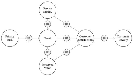 There is evidence to suggest that trust can lead to customer satisfaction [32,33,34]. Trust is defined as the belief in the reliability, truth, ability, or strength of someone or something [35]. When customers trust a company or product, they are more likely to be satisfied with their experience because they have confidence in the product or service and believe it will meet their needs [36]. Kassim and Abdullah [37] have established a link between customers who trust their service provider and their satisfaction. Such a relationship exploits this construct’s relevance as a customer lacking confidence in its service provider will almost certainly be unsatisfied. Concerning the Theory of Reasoned Action, it is also acknowledged that trust promotes satisfaction, which ultimately enhances loyalty [5]. Other authors, such as Rasheed and Abadi [38] or Park et al. [39] were also prone to set a strong relationship where trust leads to customer satisfaction. In fact, the latter emphasized this link in an analysis where it was verified and accepted that trust in a service provider is a crucial antecedent of customer satisfaction in mobile commerce. Hence, the second hypothesis of this study is suggested as follows: