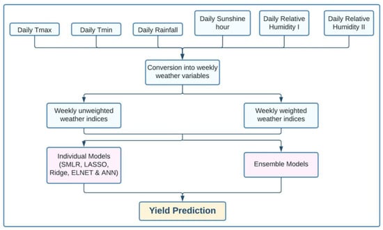 By following the above procedure, 42 weather indices were generated, as shown in Table 1. The steps involved in model development are shown in Figure 2 [14].