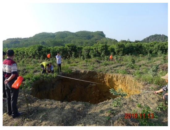 - Luo, R.; Zheng, X.Z.; Yi, S.M. Current situation and prevention of karst surface-collapse geological disaster in Guangzhou Huadu district. Chin. J. Geol. Hazard Control. 2012, 23, 72–75. [Google Scholar]