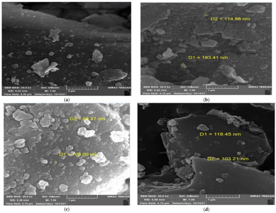 3.4. Scanning Electron Microscopy (SEM) Analysis